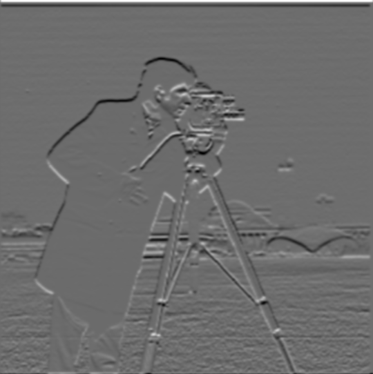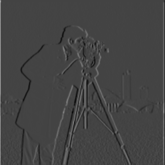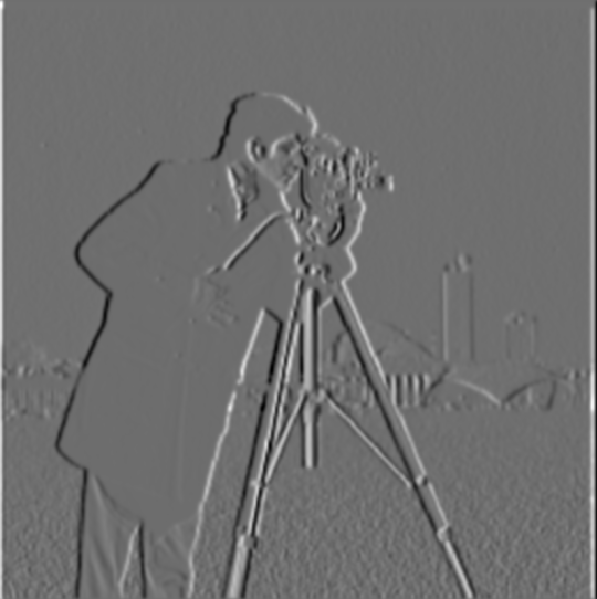 First, the image is blurred using a Gaussian kernel of size 10 created using cv2.getGaussianKernel. In order to ensure the convolution produces minimal artifacts, at least 6 standard deviations must fit inside the kernel. Thus, I chose sigma = kernel_size / 6. The blurred image is then passed through the same finite difference function used above.