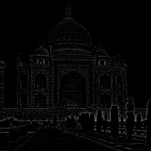 The image of the Taj Mahal was sharpened using alpha = 0.75. As shown below, the edges of the arches and tiles were emphasized, as well as the silhouettes of the trees.